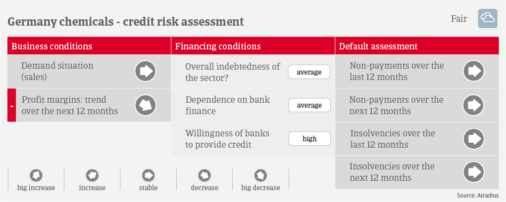 Generally, German chemicals businesses have robust equity, solvency and liquidity, which provides resilience in the current situation. A strong capitalization across the sector facilitates access to external financing, with an acceptable indebtedness structure and a well-balanced debt maturity profile. However, rising interest rates will increase financing costs for necessary investments (production facilities, tighter environmental requirements), which could lead to lower profitability.