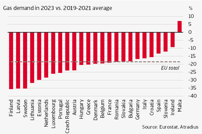 4 Downward adjustment in gas demand across the EU, but with a large regional variation