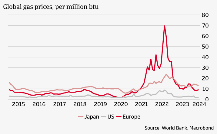 - The supply of Russian pipeline gas to Europe fell by more than 80% between the pre-crisis period (2019-2021) and 2023. The lost gas from Russia was partly replaced by LNG, with the United States as the main supplier. The sharp price increases also triggered a demand response, with gas demand falling by around 20%. After the initial price shock, the European gas market has calmed down considerably.