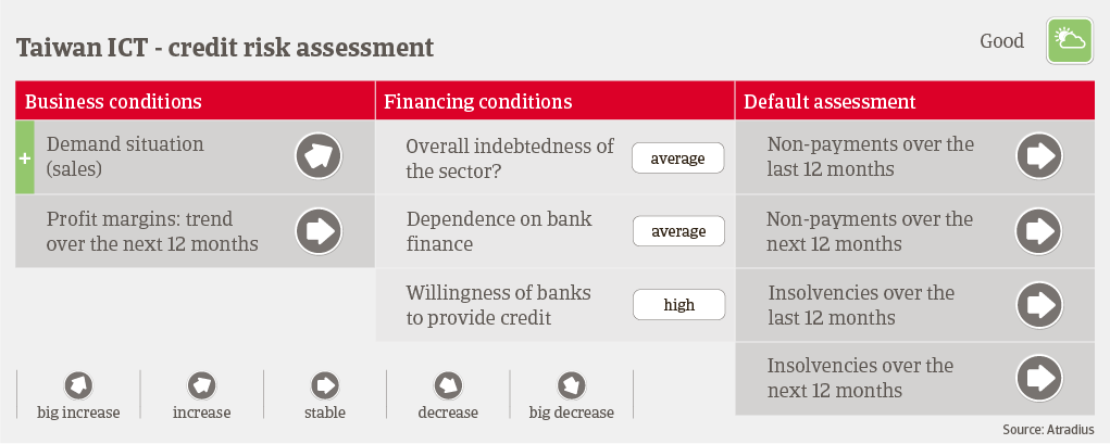 Semiconductor shortage has so far had a moderate top line impact on most ICT companies, and we expect the bottlenecks to abate in H2 of 2022. Taiwanese ICT producers have successfully passed on higher energy, raw material and transport costs to end-costumers, leading to higher gross/operating margins in 2021. We expect profit margins will level off in the coming twelve months, because the high global ICT demand will peak in the course of 2022 and in 2023.
