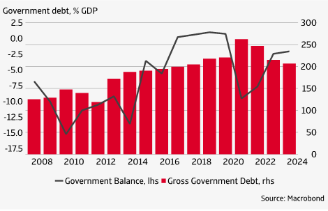 After, like almost any other country, taking a severe hit during the pandemic (government deficits of 9.7% and 7.2% of GDP in 2020 and 2021 respectively) public finances are improving. This is much needed given the rise of the debt-to-GDP ratio of 206.3% and 194.6% in 2022 and 2021.