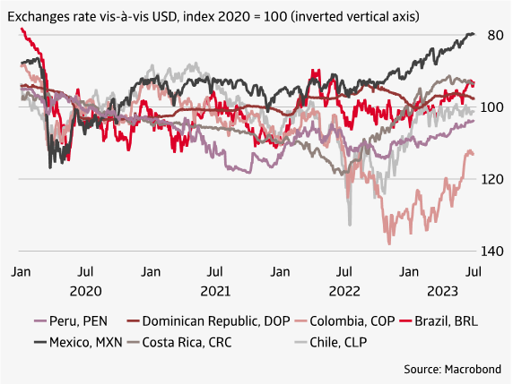 Next to the weaker external environment, elevated prices and tight financial conditions, the lacklustre economic outlook is due to policy uncertainty, limited room for fiscal support and most of all structural problems. Policy uncertainty is related to shifts in government in many countries over the past years. This reflected voters' discontent about drugs-related crime and violence and high inequality in income and access to healthcare and education, factors that also fuel social unrest. Policy uncertainty, social unrest combined with a challenging business environment constrain investments and the region's growth potential. These structural factors also explain the region's low global integration which makes it challenging for the region to benefit from nearshoring – a topic that we will explore more in depth in an upcoming research note.