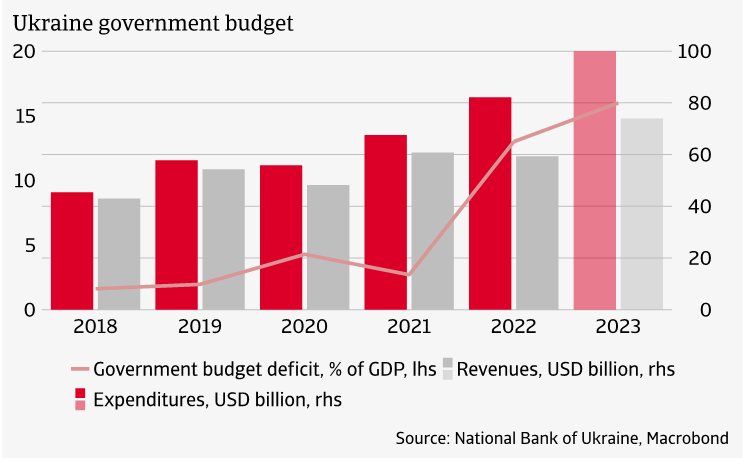 - Since the beginning of Russia's large-scale invasion, Ukraine has been paying a high humanitarian and economic toll. The economy shrank by almost one third in 2022 and the government budget was thrown significantly out of balance.