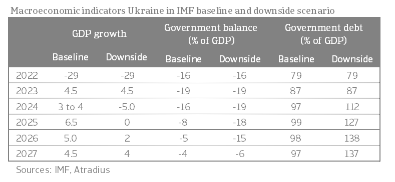 The most important creditors - the G7 countries plus several smaller Western countries, assembled in the ‘group of creditors’, have already promised Ukraine a debt treatment to restore debt sustainability once the situation has stabilized or at the latest by the end of the IMF programme (2027). Moreover, they have provided financing assurances and suspended loan repayments also during the IMF programme.
